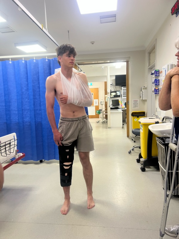 it ended like this! Not amazing but luckily nothing broken. A couple of hours at Mansfield hospital. We left had dinner and met Andrew and Luce at the camp ground and camped the night. Harry was pretty disappointed he didn’t get to race but one’s still a nice weekend away.